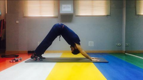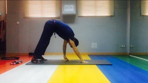– PIRÁMIDE: Realizamos 10 repeticiones del ejercicio. Intentamos mantener las rodillas lo más estiradas posible durante el ejercicio, y controlar al máximo el balanceo del tronco.
