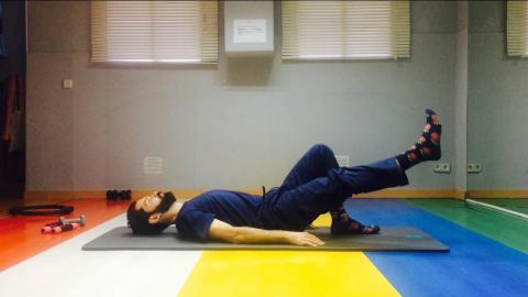CÍRCULOS CON LAS PIERNAS: realizaremos 10 círculos en cada sentido con cada pierna. El objetivo de este ejercicio es realizar los círculos lo más amplio que podamos siempre y cuando nuestra pelvis y abdomen estén controlados en la colchoneta, no podemos volcarnos al girar la pierna. Si queremos añadir dificultad podemos cruzar los brazos en el pecho para reducir el apoyo y para mayor dificultad, estirar la pierna que queda en el suelo.
